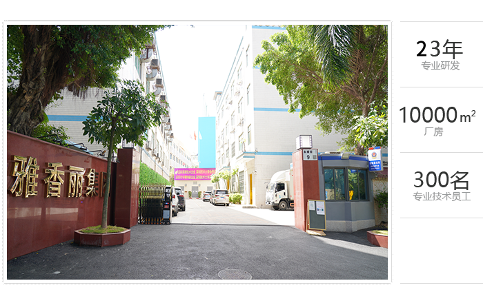 占地面積一萬(wàn)余平方米,專(zhuān)業(yè)技術(shù)員工300余人,雅香麗憑借著在行業(yè)內(nèi)的專(zhuān)業(yè)化、精細(xì)化、特色化、新穎化、可持續(xù)化,榮獲國(guó)家"高新技術(shù)企業(yè)"、"深圳市專(zhuān)精特新中小企業(yè)"等重量級(jí)認(rèn)證。